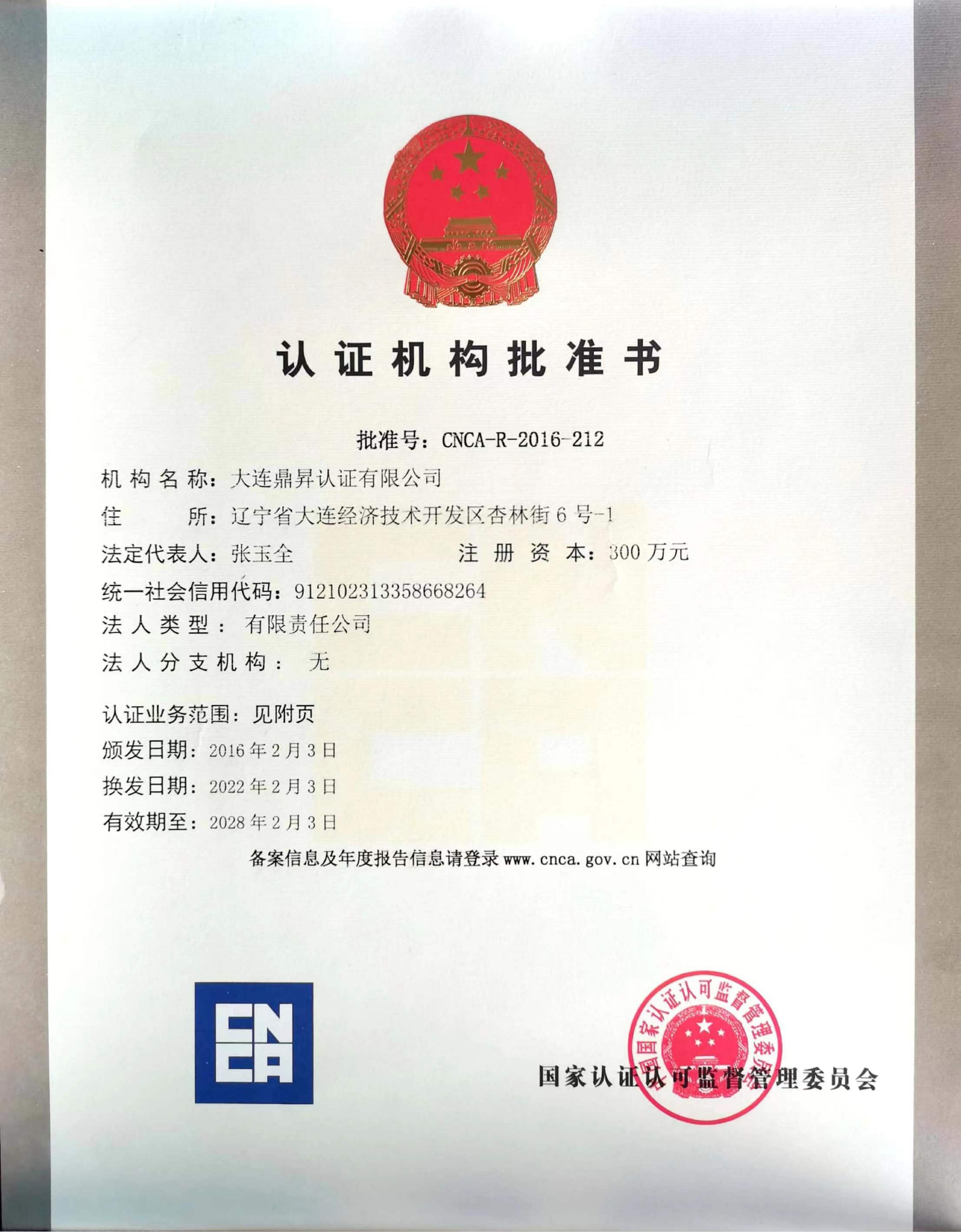 認(rèn)證機(jī)構(gòu)批準(zhǔn)書-鼎昇認(rèn)證